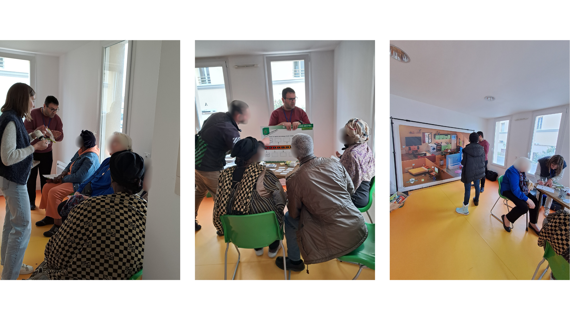 La sensibilisation s’est articulée autour d’un temps d’échanges en pied d’immeuble, permettant d’aborder avec les locataires les éco-gestes du quotidien, le confort thermique en hiver, ainsi que les usages du logement.